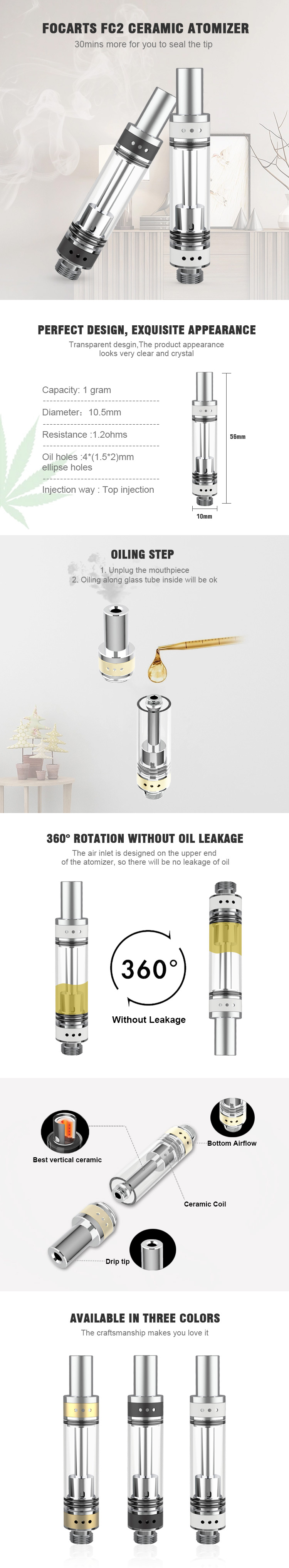 The air inlet is designed on the upper end of the atomizer , so there will be no leakage of oiI